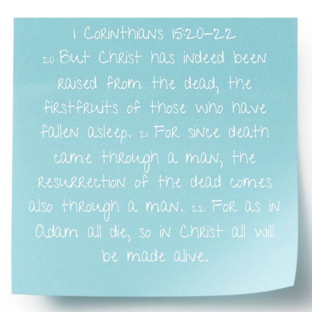 “But Christ has indeed been raised from the dead, the firstfruits of those who have fallen asleep. For since death came through a man, the resurrection of the dead comes also through a man. For as in Adam all die, so in Christ all will be made alive.”