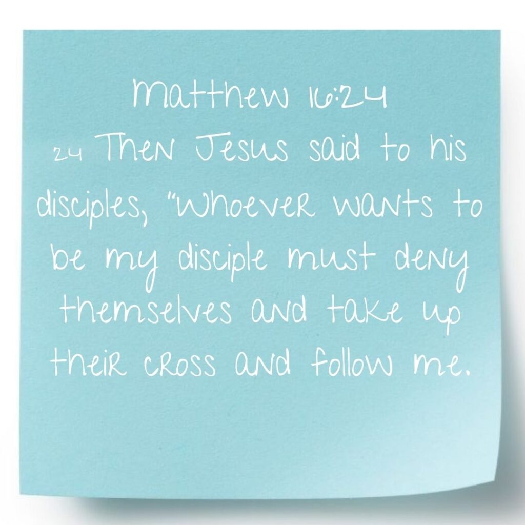 - Take Up Your Cross – A life of discipleship isn’t always easy; it requires sacrifice and obedience, even when it’s difficult.